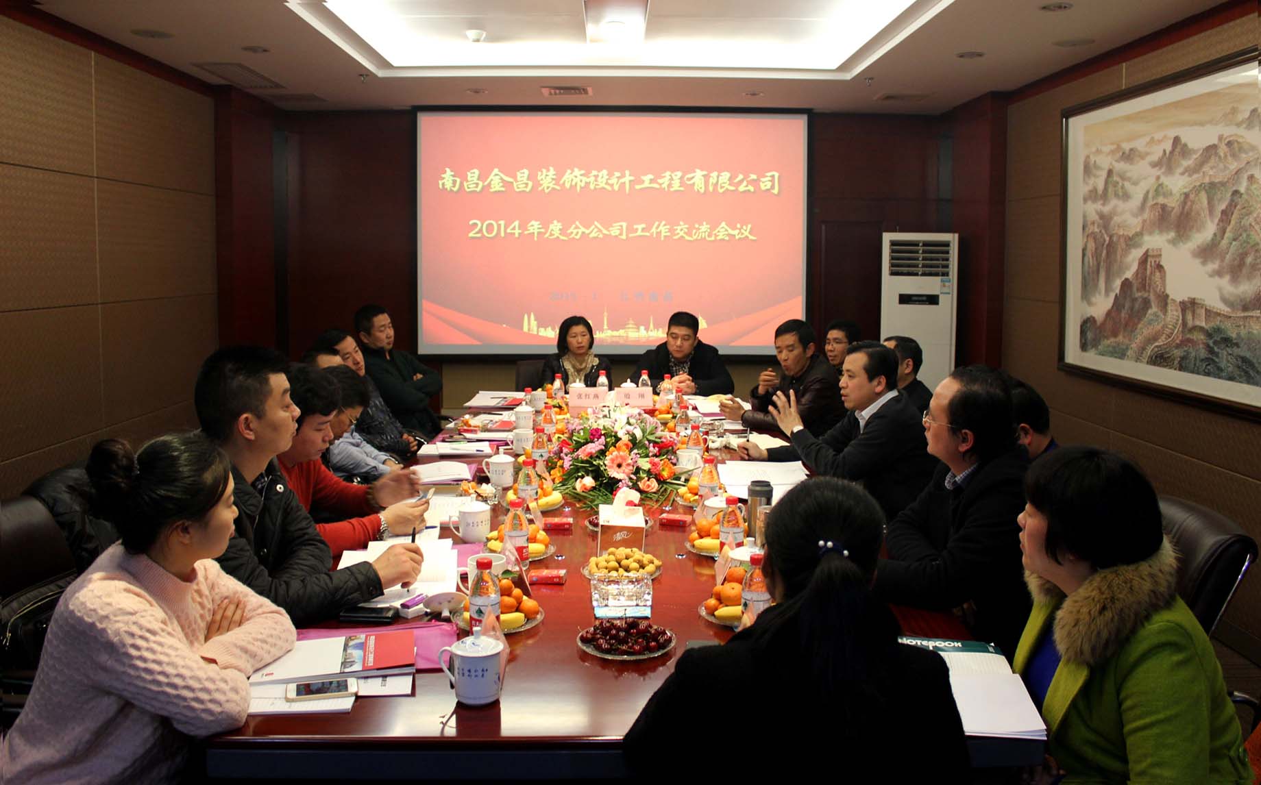 2015年1月24日,南昌金昌裝飾設(shè)計工程有限公司2014年分公司工作交流會議在昌順利召開。公司董事長兼總經(jīng)理張強(qiáng)、常務(wù)副總經(jīng)理姚海平、副總經(jīng)理彭家祖、副總經(jīng)理王昕、各分公司負(fù)責(zé)人參加了會議。