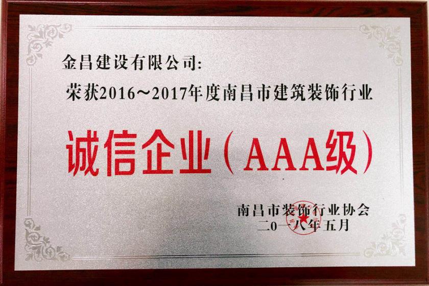 日前,南昌市建筑裝飾協(xié)會對2016—2017年度南昌市建筑裝飾(公裝)企業(yè)誠信評價結果進行公示,金昌建設有限公司憑借規(guī)范的企業(yè)運作和誠信經(jīng)營,連年登榜,再獲殊榮。