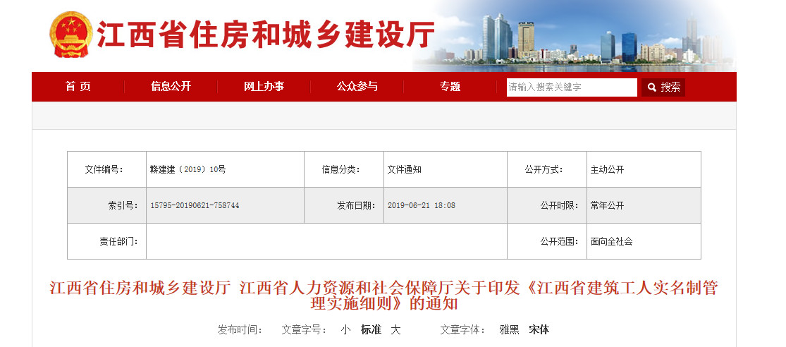 江西省建筑工人實名制管理實施細則