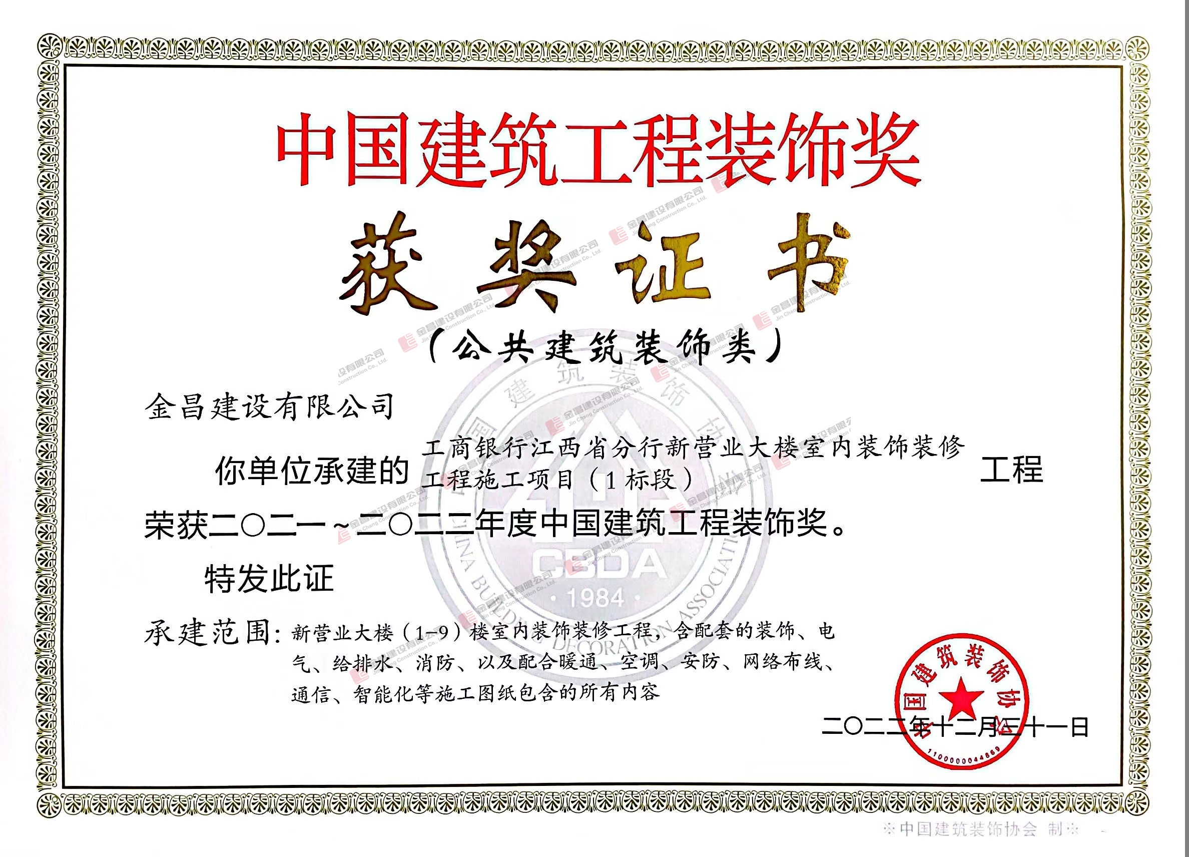 工商銀行江西省分行新營業(yè)大樓室內(nèi)裝飾裝修工程施工項(xiàng)目(公共建筑裝飾類)